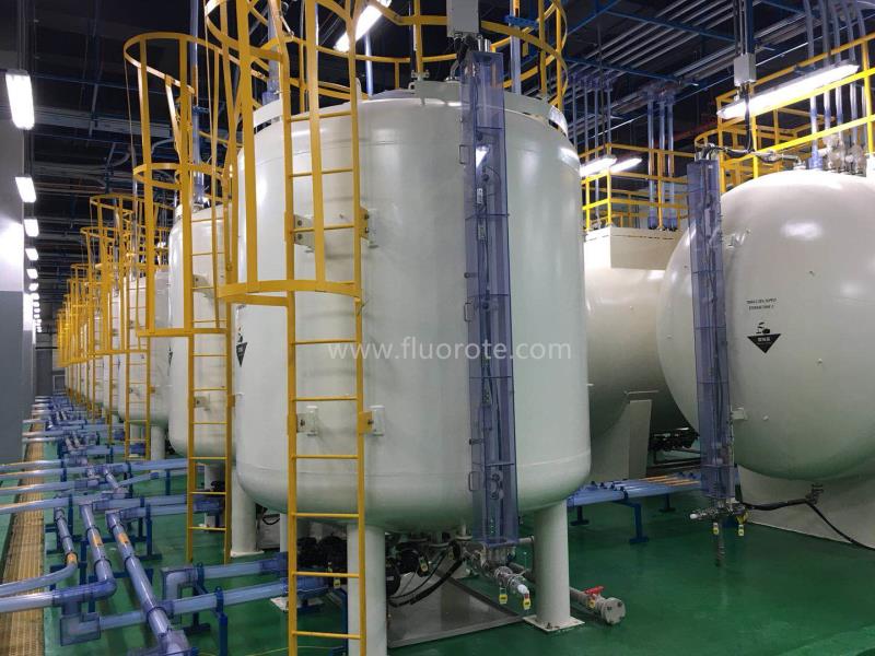 本公司主要生產(chǎn)各類防腐大型儲(chǔ)罐、運(yùn)輸罐車、反應(yīng)罐、反應(yīng)釜、塔器、換熱器、過濾器、攪拌器、管道和管件等。采用的工藝有板材緊襯,模壓燒結(jié),熱滾涂、熱噴涂等,采用的材料有PTFE(聚四氟乙烯F4)、PFA、(可溶性四氟乙烯)、PVDF(聚偏氟乙烯F2)、FEP(四氟乙烯—六氟丙烯F46)、ETFE(乙烯四氟—乙烯F40)、ECTFE(三氟氯乙烯—乙烯F30)、PPS(聚苯硫醚)、PP(聚丙烯)、PO(聚烯烴)、PE(聚乙烯)等各種氟樹脂和工程塑料。能耐除熔融堿金屬以外一切強(qiáng)酸、強(qiáng)堿和有機(jī)溶劑,可廣泛用于化工、石油、化肥、電子、新能源、冶金、電力、制藥、海水淡化、食品等工業(yè)行業(yè)。